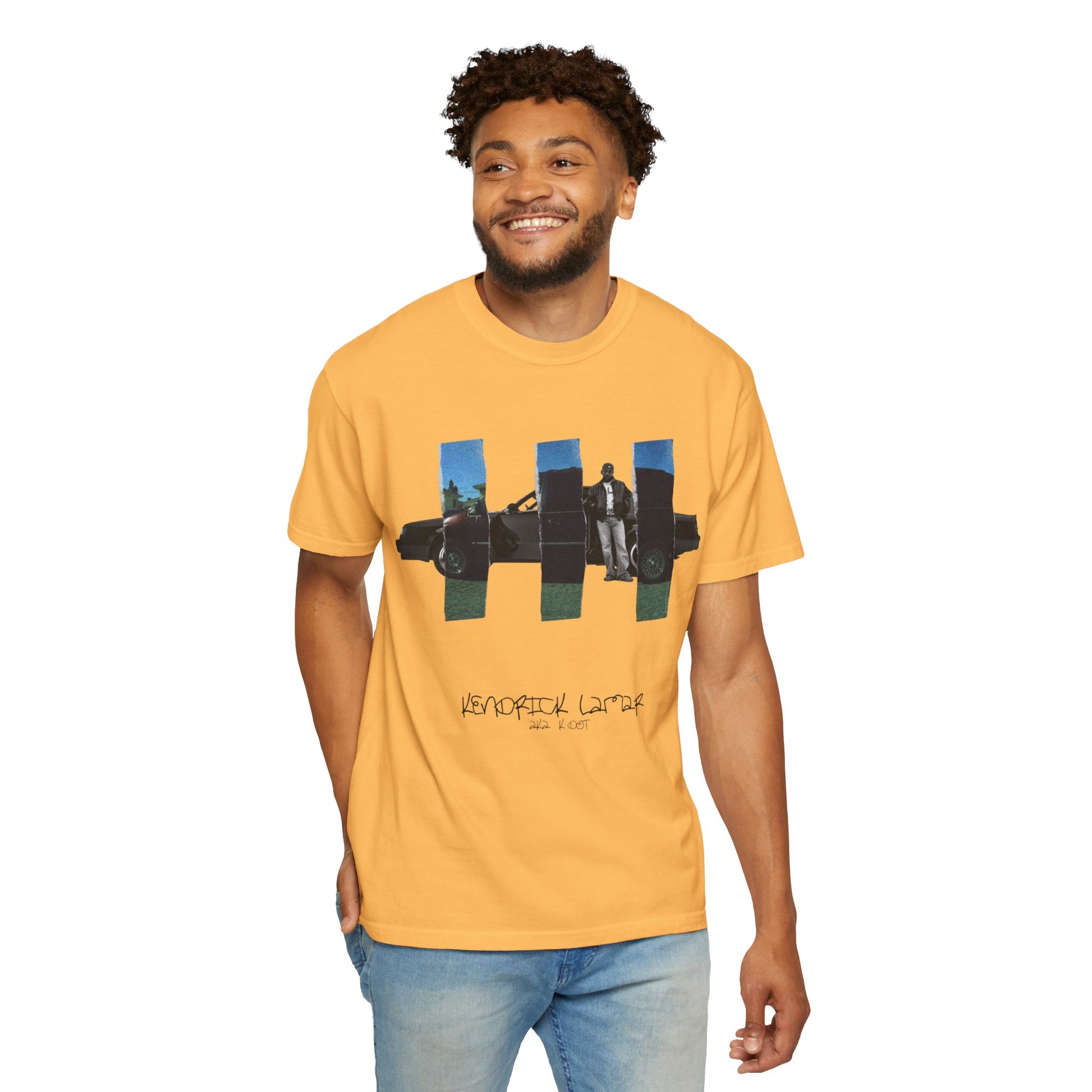 This Kendrick Lamar GNX + good kid, m.A.A.d city Mashup T-shirt is perfect for fans of the artist looking to show off their love for his music. The garment-dyed fabric provides a soft color and texture, while the double-needle stitching ensures durability. This unisex tee is ideal for adults and comes in a range of sizes, making it a great addition to any fan's wardrobe. Perfect for casual wear or as a statement piece for music events and concerts.